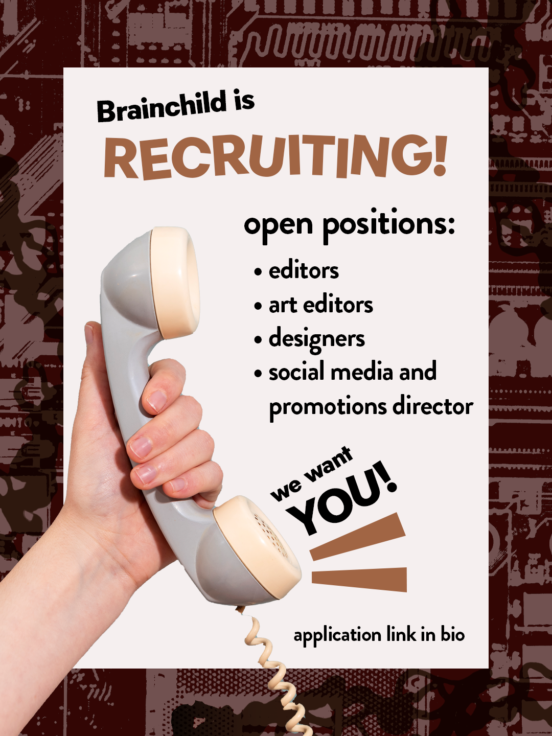 Want to be a part of a published magazine? Brainchild is recruiting for the 2026–2027 school year! We’re looking for editors, art editors, and graphic designers. Email editor@brainchildmagazine.com or message us on Instagram @brainchild_magazine with any questions.